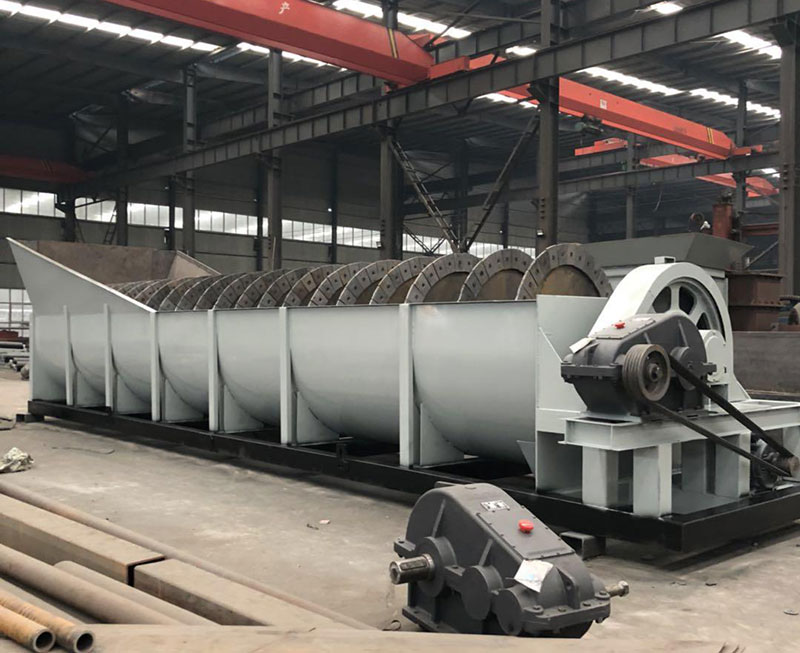 螺旋洗石機用于建筑工地、砂石廠、預制廠及水電工地大量用砂石的脫泥、篩選作業,也可用于礦石選別作業。能有效處理0-30mm以內的物料,可把物料上的泥土、灰粉,分洗成清潔的物料。本機結構簡單,維修容易,洗選效率高等優點。螺旋洗砂機又分為雙螺旋和單螺旋。 雙螺旋洗石機相比于單螺旋洗沙機具有效率高,產量大等特點,能處理0-30mm以內的物料。