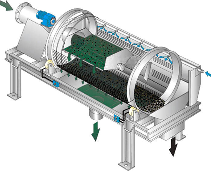 你知道滾筒篩是什么嗎?滾筒篩是分選技術中應用非常廣泛的一種機械,是通過對顆粒粒徑大小來控制垃圾分選的,分選精度高。滾筒篩的筒體一般分幾段,可視具體情況而定,篩孔由小到大排列,每一段上的篩孔孔徑相同。滾筒篩主要有電機、減速機、滾筒裝置、機架、密封蓋、進出料口組成。滾筒篩的結構構成為了提高分選精度,為了避免小顆粒物料在大孔徑篩分段被篩分出來的情況,垃圾在滾筒篩中必須經過充分的翻料,而且垃圾的移動速度不能過快。通常在滾筒內壁都會裝上撓板,它的作用就是提升垃圾顆粒,讓不同粒徑的垃圾顆粒都盡可能有機會接觸到篩孔,如果符合孔徑的要求,顆粒就能透篩,達到滾筒篩分選的目的。!